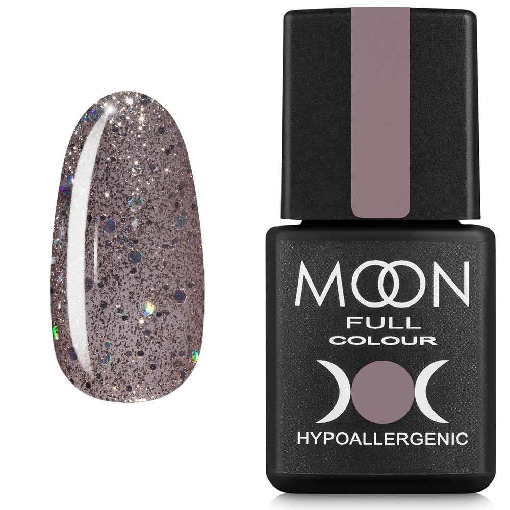 - Підвищена стійкість – формула Гель-лак MOON FULL color Gel polish №323 сріблясто-бежевий з різнобарвним гліттером містить компоненти, що збільшують термін носіння до 4 тижнів і мають зміцнюючу дію на нігтьову пластину;